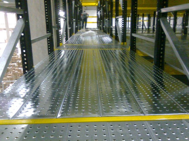 Katlardaki yürüyüş alanları ve platformların üzerleri tel ızgara, sunta, mdf, sac tava gibi malzemelerle kaplanmıştır.Mezanin raf sistem isteğe göre yanlamasına veya uzunlamasına genişletilebilir. Katlar arası geçişler merdiven veya asansör yardımıyla sağlanmaktadır. Bu sistemde hem depolama hem de çalışma alanı bir arada sunulmaktadır. Ürünler manüel veya otomatik olarak depolanabilir.